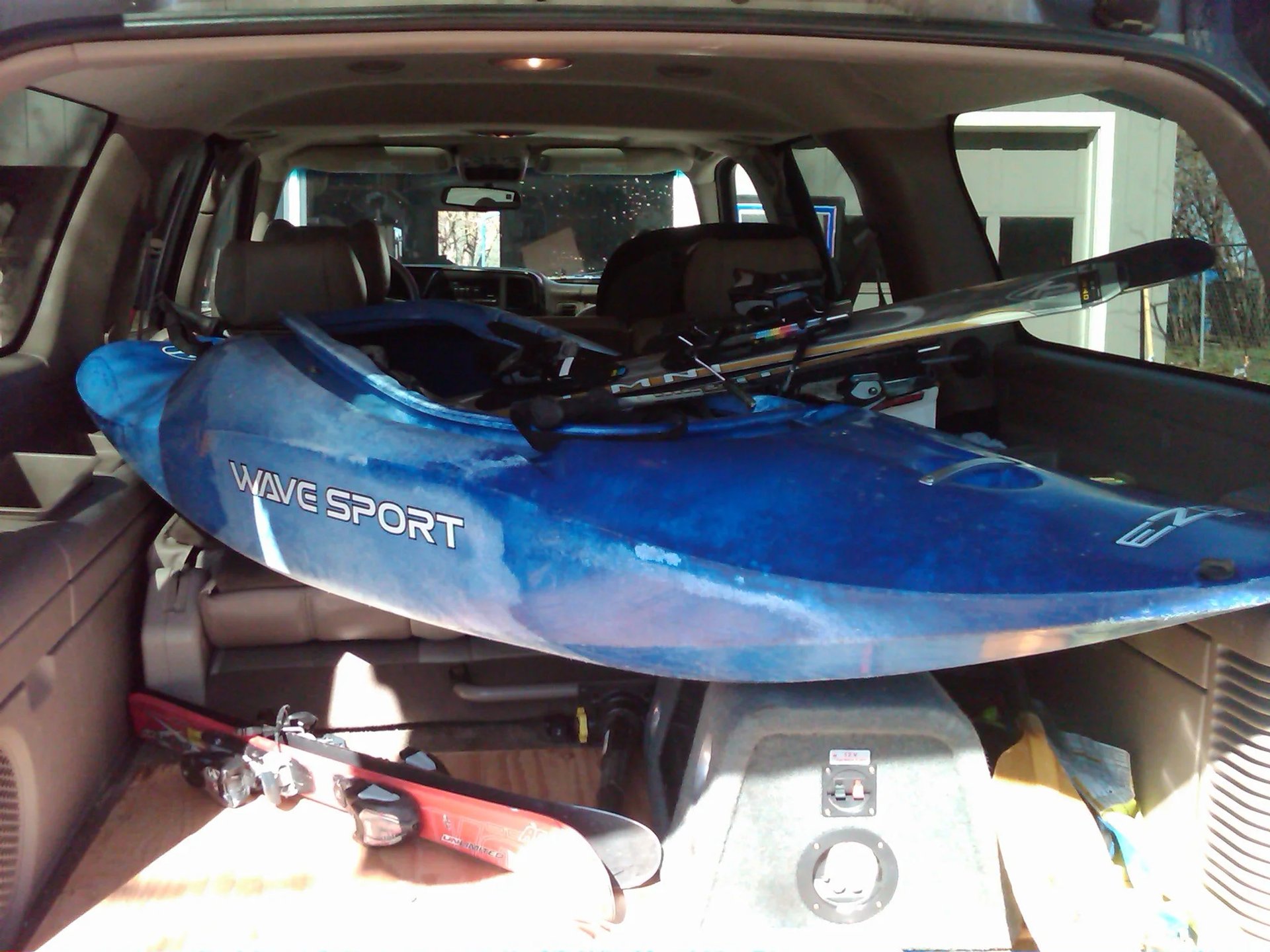 Early 2000s, Kids ski in the car, Dad’s skis stuffed inside his kayak. Talk about choosing your own adventure.